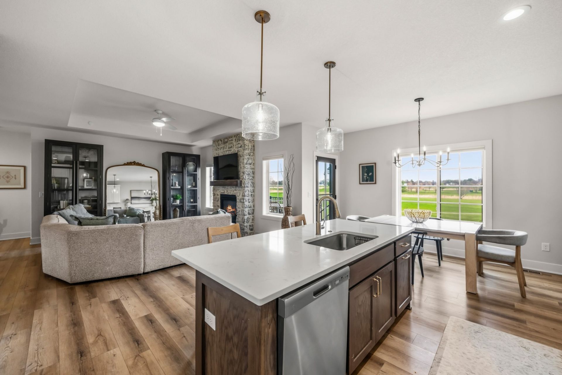 Tucked along the scenic, peaceful edge of Cedar Pointe Golf Course, this exceptional 4-bedroom, 3-bath home offers over 2,500 square feet of beautifully finished living space and a setting that's hard to match. With its striking modern exterior, and standout curb appeal, this home makes a lasting first impression. With no rear neighbors, your backyard opens to sweeping greens, tranquil mornings, and unforgettable sunsets creating a sense of privacy and calm you'll appreciate every day. Inside, luxurious upgrades and refined finishes give the home a custom, high-end feel while maintaining the warmth and comfort of Iowa living. The open, inviting layout is filled with natural light, with expansive windows showcasing serene golf course views. The kitchen anchors the main living space, perfect for gathering, entertaining, and everyday life. The primary suite offers a private retreat, while additional bedrooms provide flexibility for family, guests, or a home office. The finished lower level adds even more versatility, ideal for a second living area, home gym, or game-day space, along with generous storage. Located just minutes from DMACC Boone Campus and the new Ledges Elementary, you'll also enjoy easy access to Ledges State Park, the Boone & Scenic Valley Railroad, and the charm of a connected, welcoming community. This is where comfort, space, and lifestyle come together with a design that truly stands out.