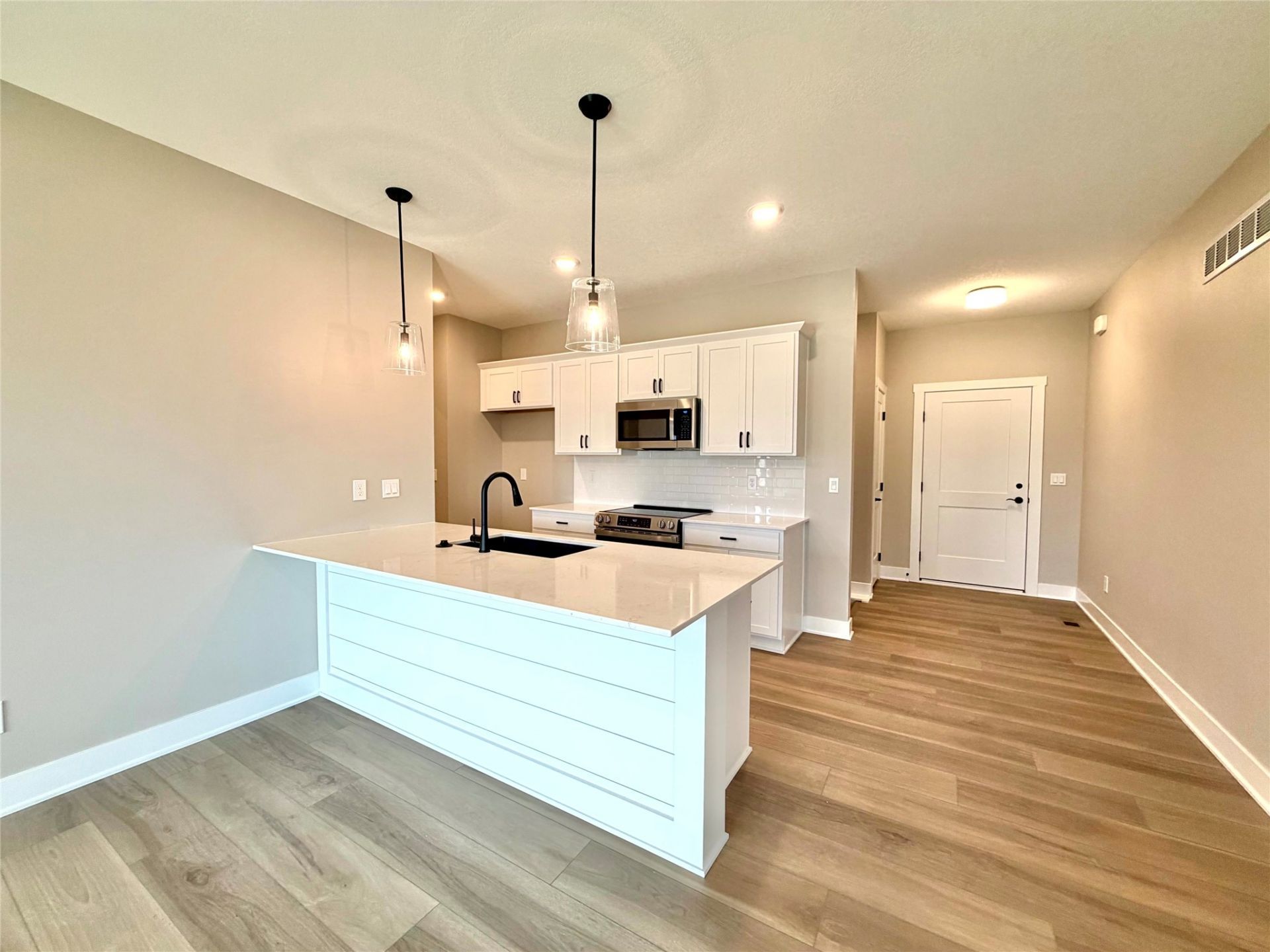 Walkout ranch backing to green space! Upon entering you'll find the open concept kitchen to the dining area and family room. Kitchen offers white cabinetry, quartz counters, tile backsplash, stainless steel appliances, peninsula island & pantry closet. Family room offers large windows, ceiling fan, & shiplap fireplace. Dining area is right off the kitchen & slider to deck to make this space perfect for entertaining or summer cookouts. Primary suite offers a comfortable bedroom with ceiling fan & large window, en suite bathroom with walk in shower & walk in closet. On the other side of the home you'll find the first guest bedroom & full bathroom. Main level is rounded off with laundry & 2 car attached garage. Walkout finished basement adds a second family room, two guest bedrooms, another full bathroom, and lots of storage space. There are 9' ceilings both upstairs & downstairs. Situated within walking distance of a childcare facility, this home is only a short drive to the main city of Van Meter. Located in the highly sought after Van Meter School District. Come see what small town living is, while only being 15 mins from the amenities of West Des Moines! Additionally, this home qualifies for 100% USDA FINANCING! Therefore, if you qualify there would be a 0% down payment option available!