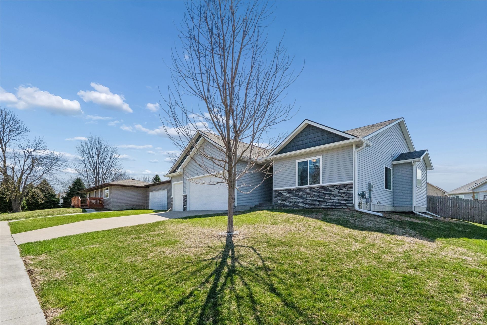 Don't miss this lovely ranch home tucked in a quiet neighborhood with newer construction and all the right spaces! Main level living features 3 bedrooms, 2 baths, and a stunning walk-in tile shower and soaker tub in the primary en suite. The spacious kitchen boasts quartz countertops, a tile backsplash, stainless steel appliances, its own pantry room, a dining area with doors to the deck, and that open-concept flow into the gas fireplace living area ~ complete with a tray ceiling that so many are dreaming about. A shiplap-backed built-in bench and drop zone off the 3-stall garage entrance keeps everyday life organized, with laundry conveniently located nearby. The welcoming front entry offers a dedicated coat closet, and the wide hallway sets the tone for every visit. Retreat to the primary suite featuring a tray ceiling, stunning walk-in tile shower, and soaker tub. The recently finished lower level is an entertainer's dream, complete with a wet bar, generous seating area, and an additional bedroom and full bath perfect for guests, family, or a home office. An unfinished storage area with bonus closet rounds out the lower level, offering endless flex space for a workout room, creative studio, or seasonal storage. Step outside to a spacious, fenced backyard with plenty of room to enjoy, entertain, and even grow your very own garden! Homes like this don't last. Call today to schedule your private showing!
