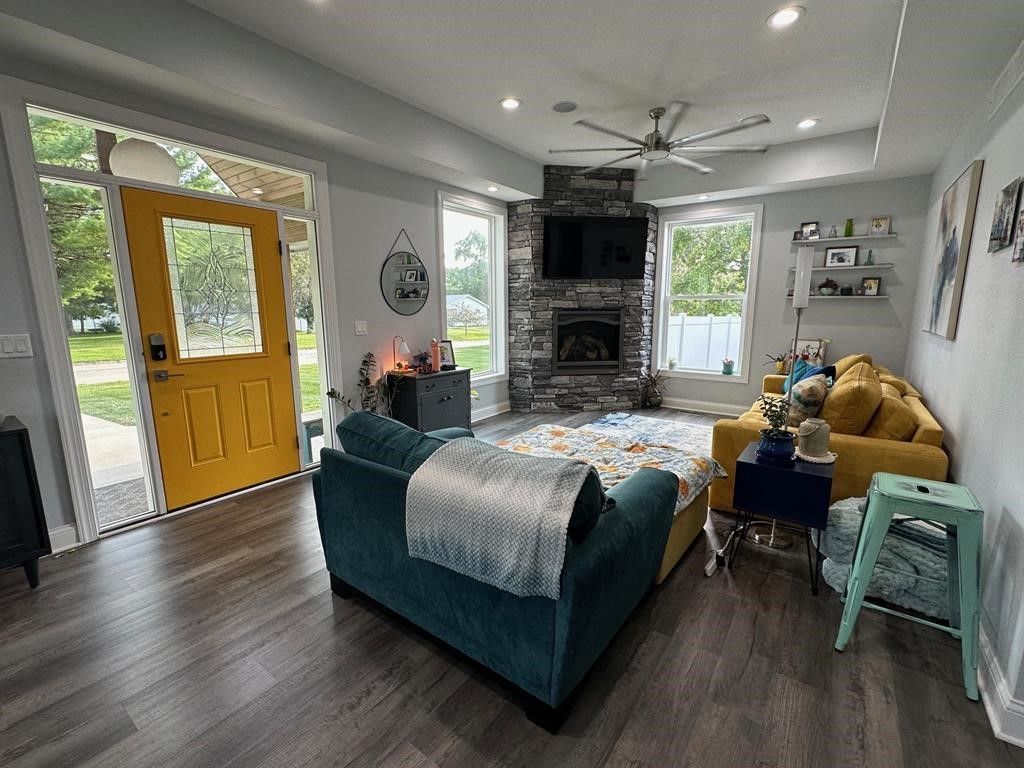 If the Wow Factor is what you are hoping for in a home, this one is a must-see! This home was gutted down to the studs and completely rebuilt, so it is just like brand new! Walk in the front door, and you will love all the natural light as you enter the living room with a cozy gas fireplace. The large dining area adjoins the gorgeous kitchen with tons of cabinets and countertop space. There is a great mud/drop zone with laundry and a half bath off the kitchen that goes into the huge 2-car garage. The primary suite is on the main level and has a stunning gas fireplace, a huge walk-in closet, and a spa-like retreat bath with a stunning tile shower & separate soaking tub. Upstairs, you will find 2 large additional bedrooms, a full bath and a bonus room (currently used as a 4th bedroom) that could also be used for a game room or 2nd living room area. There is a whole-house speaker system for entertaining! Speaking of entertaining, this yard is every host's dream! Privately fenced so you can enjoy your composite deck, covered patio, and hot tub area! This area walks into the bonus living quarters inside the massive outbuilding. This could be a mother-in-law suite, home office, or you could make a little cash renting it out! It has a kitchen/dining/living area, a full bathroom, and non-conforming bedroom or office space. The shop area is huge and ready for all of your hobbies! Schedule a showing of this truly remarkable property today!